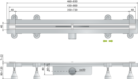 Дренажный канал 80 см, подрезаемый, гидрозатвор, ABS, горизонтальный выход OMP Tea Sumisura 983.201.8.N, оружейная сталь