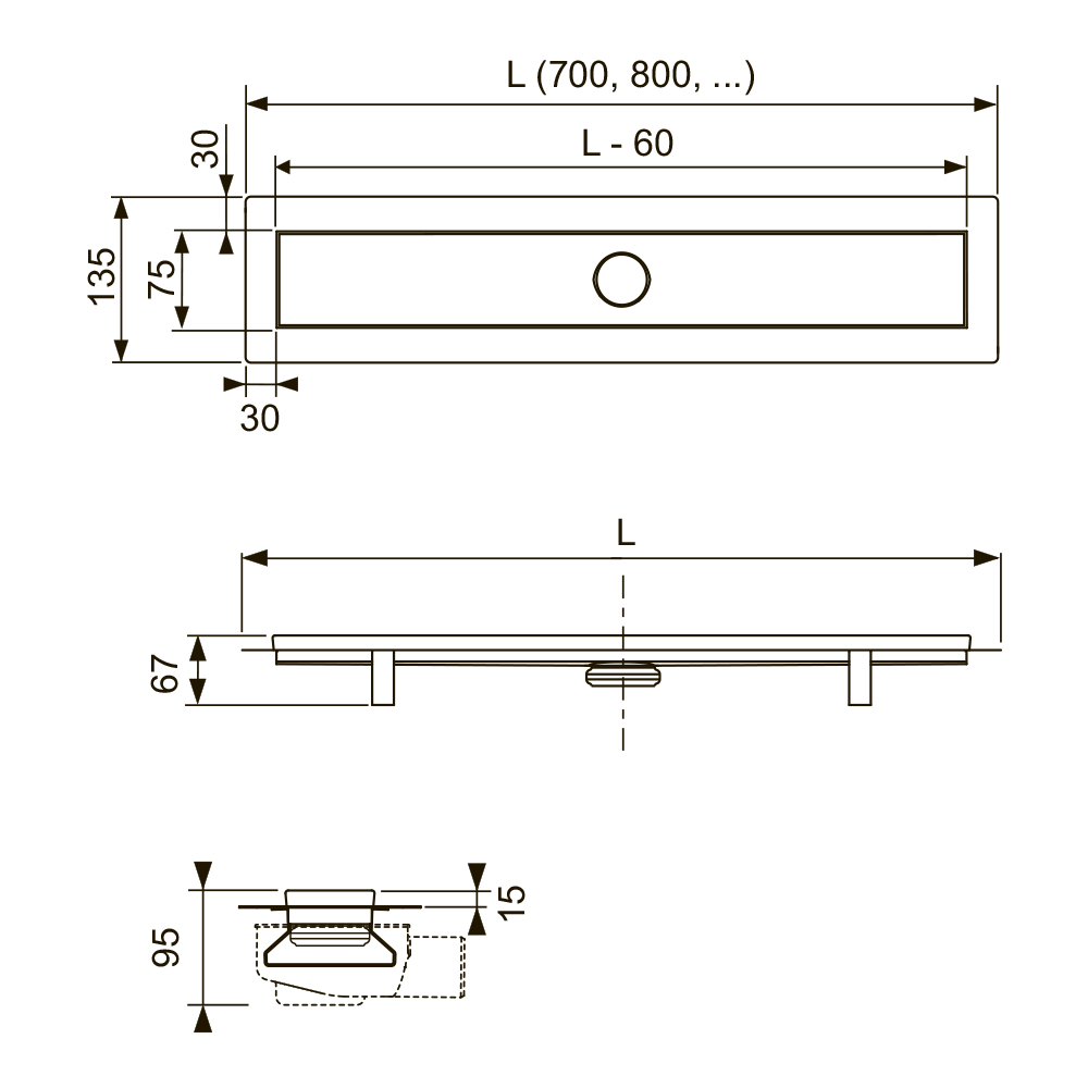 Сифон DN 50, выход вбок, производительность (согласно DIN EN 1253) при уровне воды 10/20 мм над решеткой: 0,7/0,8 л/с; высота гидрозатвора = 25 мм согласно DIN EN 1253;