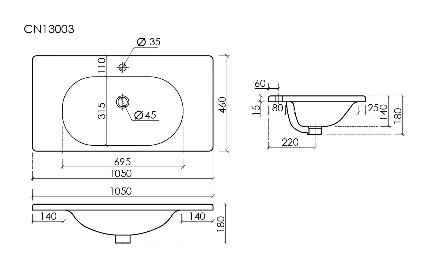 Раковина накладная для установки на мебель.