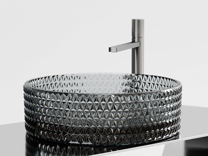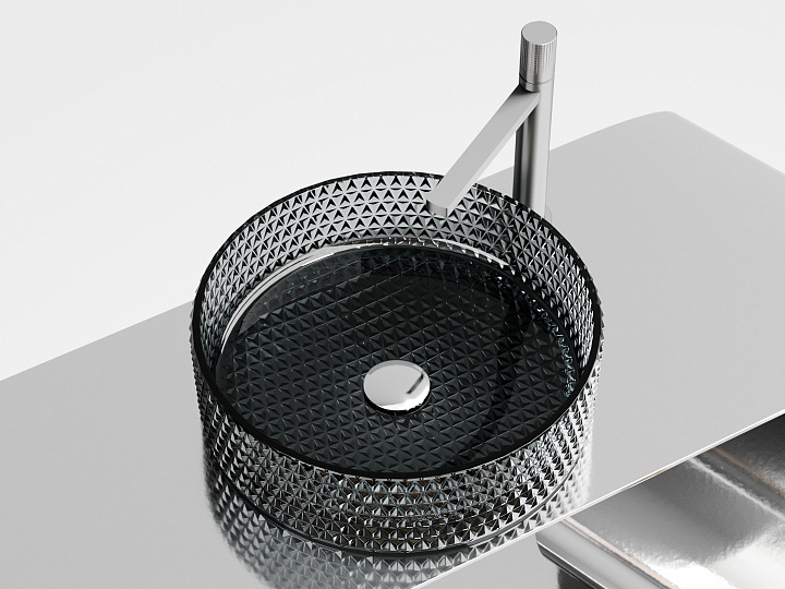 Умывальник чаша накладная круглая (цвет чёрный) Cristal 360*360*112мм
