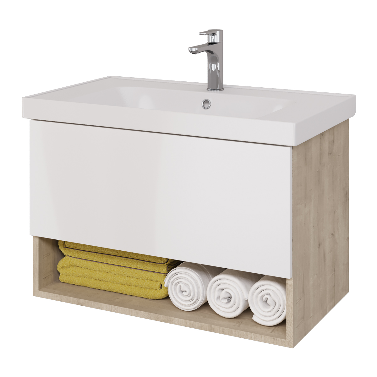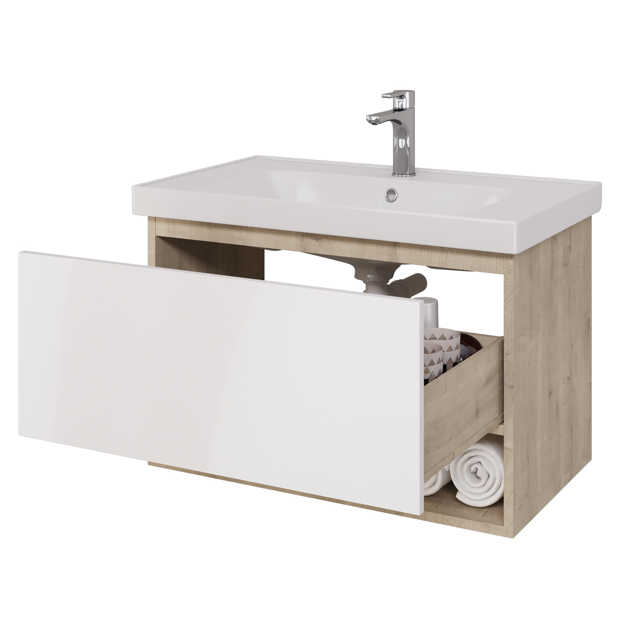 Название: Тумба PERFECTO, 90 см, подвесная, 1 ящик, дуб эврика/белый глянец