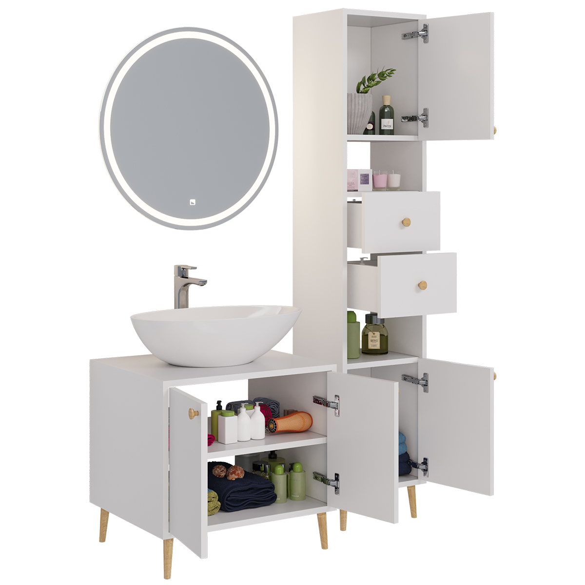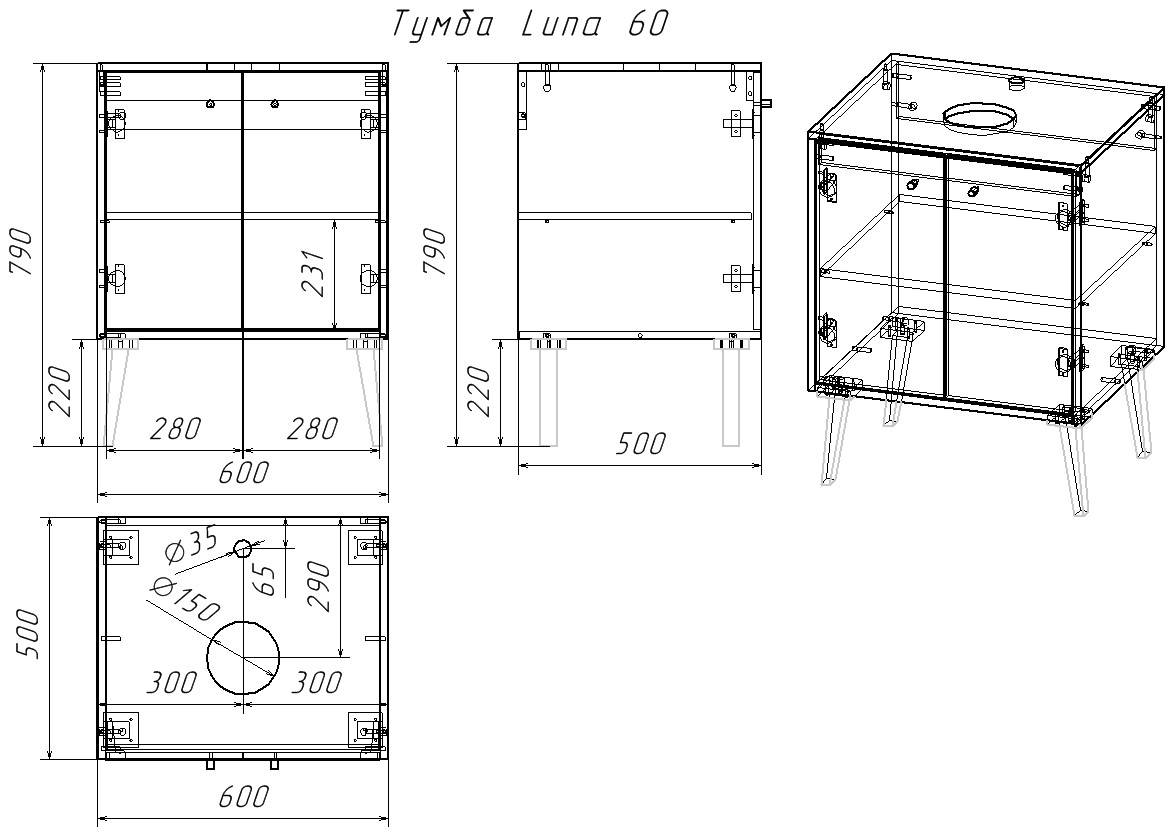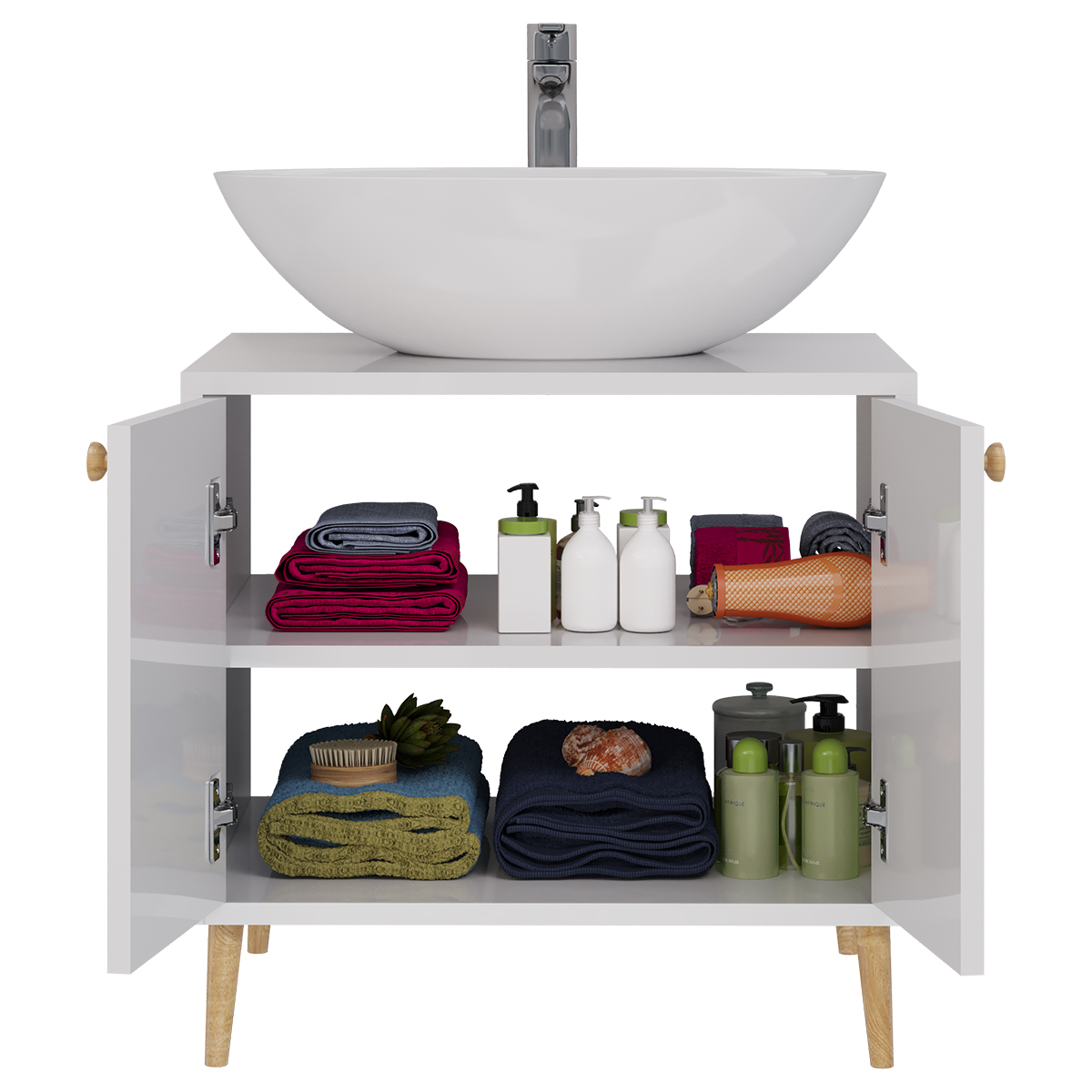 Тумба напольная, LUNO 60 см, 2 дв., белый глянец,