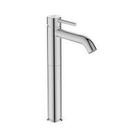 CERALINE Vessel Однорукоятковый смеситель для раковины с удлиненным корпусом, картридж 35 мм Firmaflow® с функцией HWTC (ограничение максимальной температуры горячей воды) (ВНИМАНИЕ - с марта 2021 замена на 28mm FirmaFlow), гибкая подводка G3/8", монтаж IS-Fix - крепеж на центральной гайке M 33x1,5 с двумя блокирующими винтами (обеспечивает стабильную фиксацию смесителя), аэратор Cashe с ограничением потока 5 л/мин., металлическая рукоятка с индикаторами горячей / холодной воды, без донного клапана.