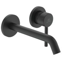 CERALINE Настенный смеситель для раковины, для монтажа со встраиваемым комплектом A1313NU (заказывается дополнительно), трубчатый излив 180 мм, аэратор Cashe, картридж 28 мм FirmaFlow с функцией HWTC, металлическая рукоятка с индикаторами горячей / холодной воды Silk Black (Черный матовый).
