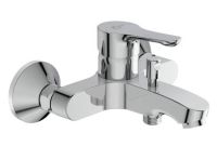 ALPHA Однорукоятковый настенный смеситель для ванны/душа, монтаж на стандартных эксцентриках, литой излив, аэратор Perlator, картридж 35 мм с функцией HWTC (ограничение максимальной температуры горячей воды), с функцией CLICK (ограничение потока воды), металлическая рукоятка с индикатором горячей / холодной воды, автоматическое переключение ванна/душ, обратный клапан, без душевого гарнитура.