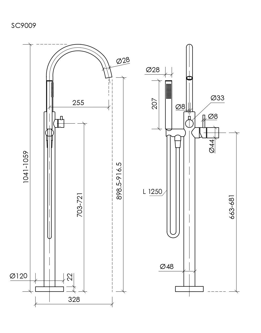 Встроенный девиатор автоматически переключает поток с душа на излив при закрытии воды
