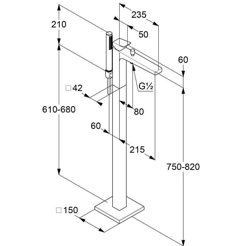Ванна: расход воды 22 л/мин при давлении 3 бара