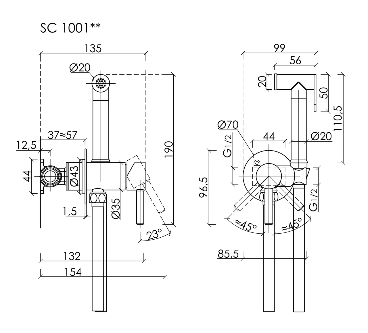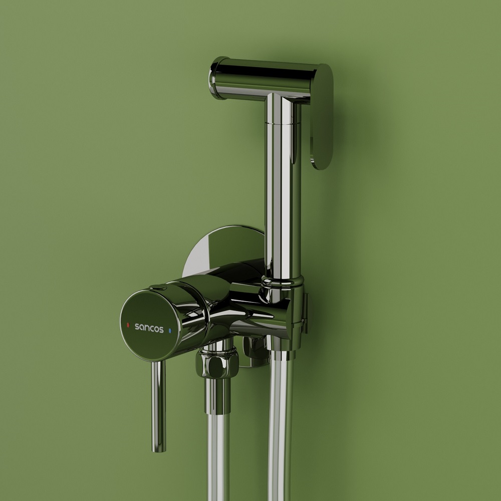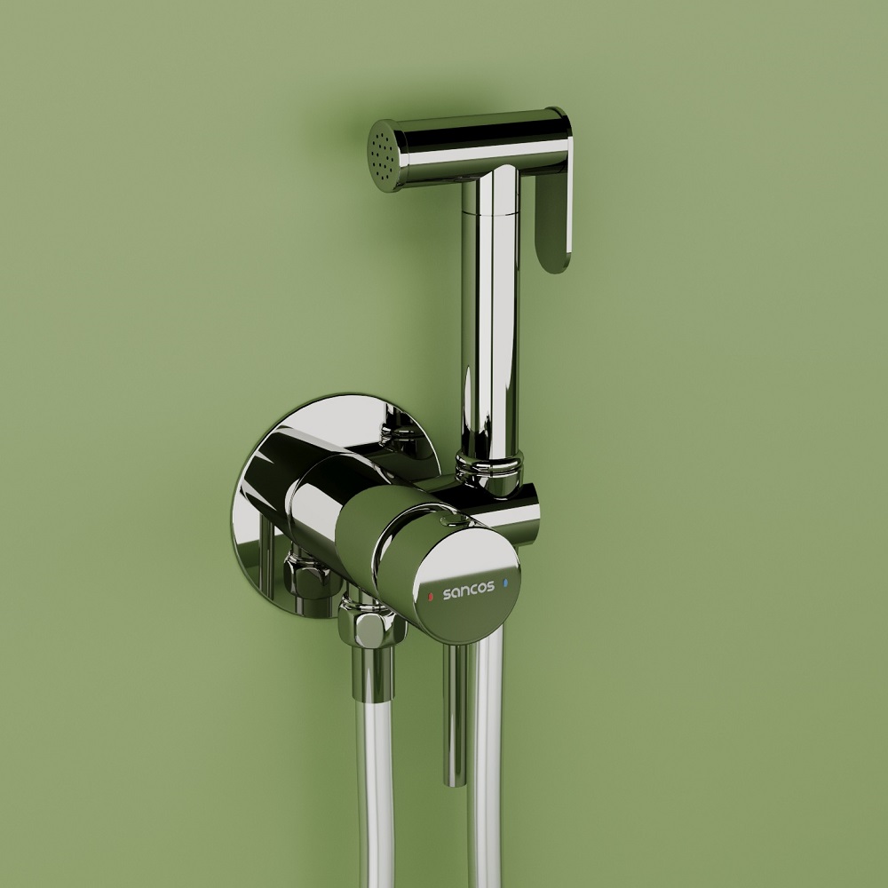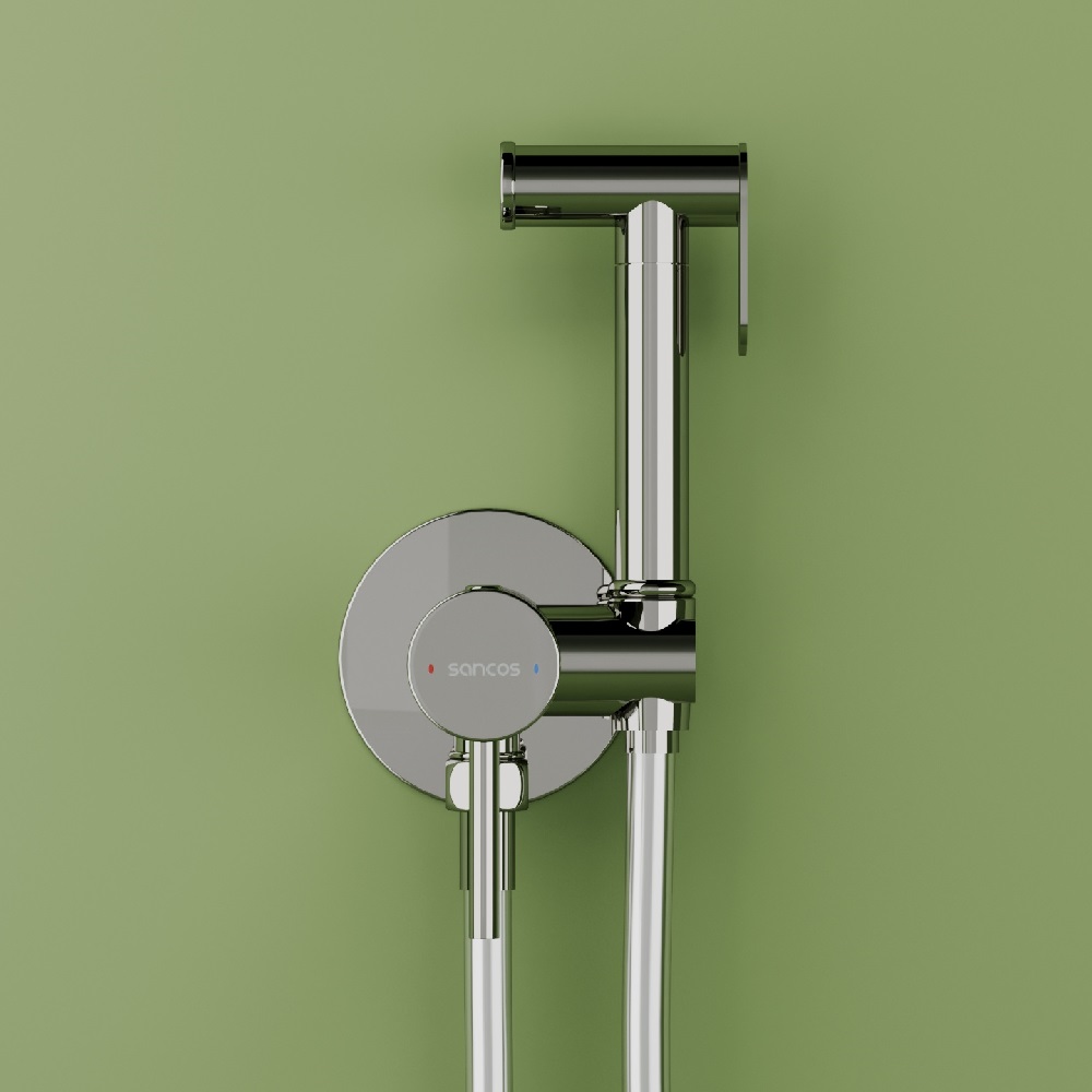 Гигиенический душ SANCOS Start со смесителем, c внутренней частью, цвет хром глянцевый, встраиваемый, настенный