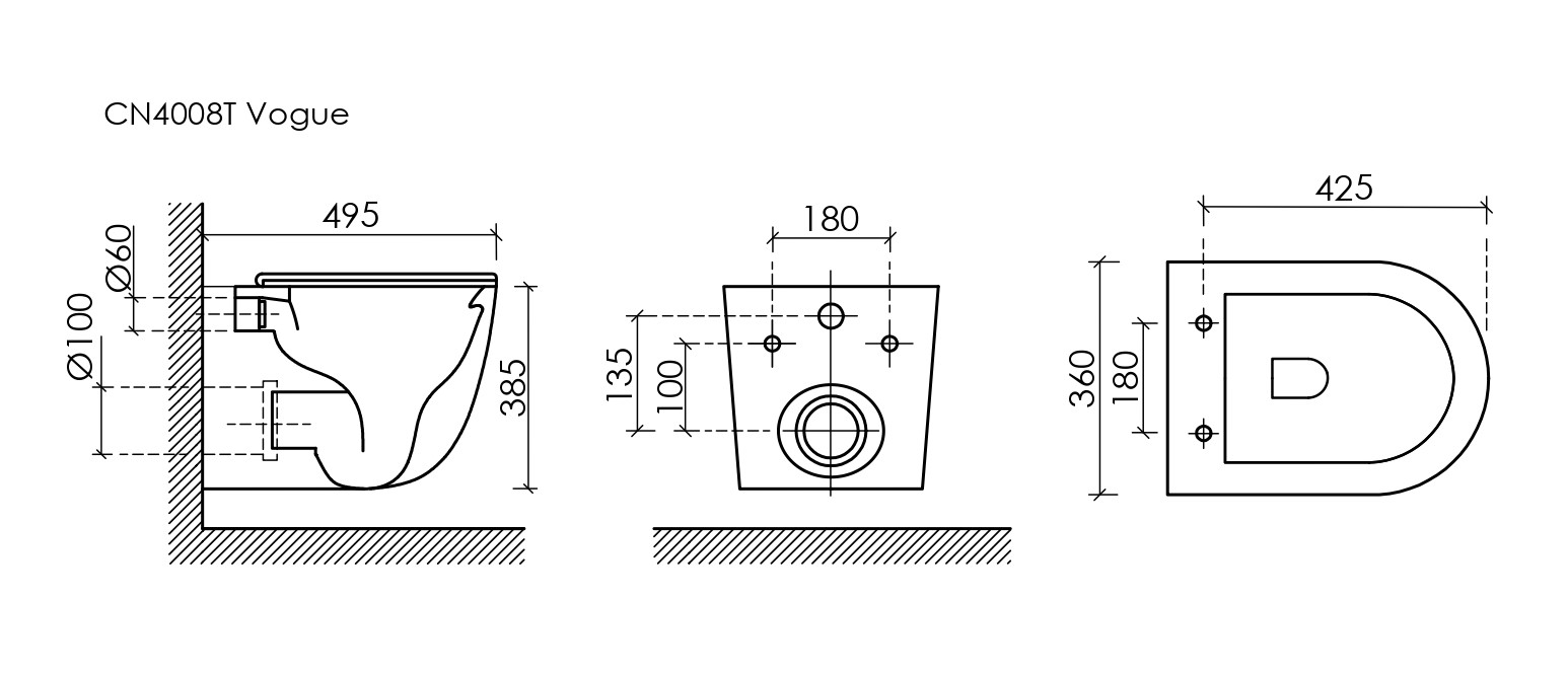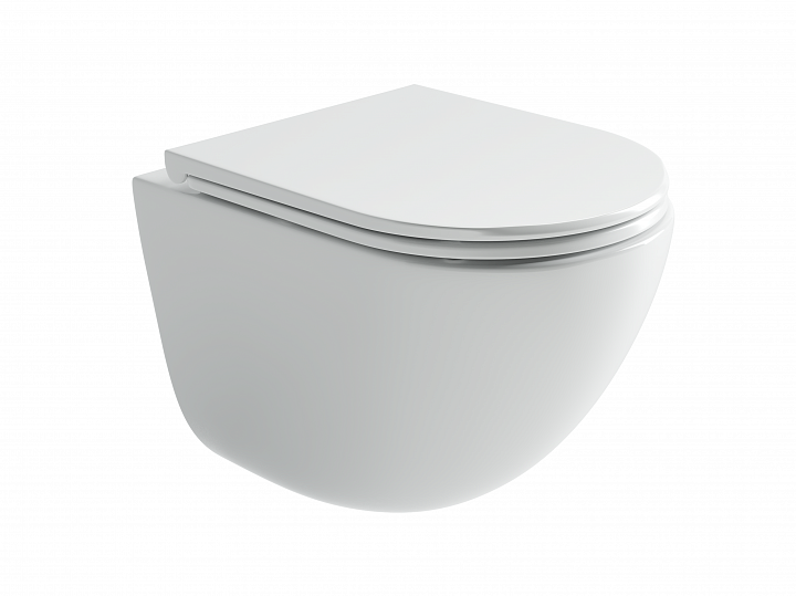 Подвесной унитаз Vogue Торнадо безободковый, с ультратонким сиденьем с микролифтом, с креплением скрытого монтажа, белый.